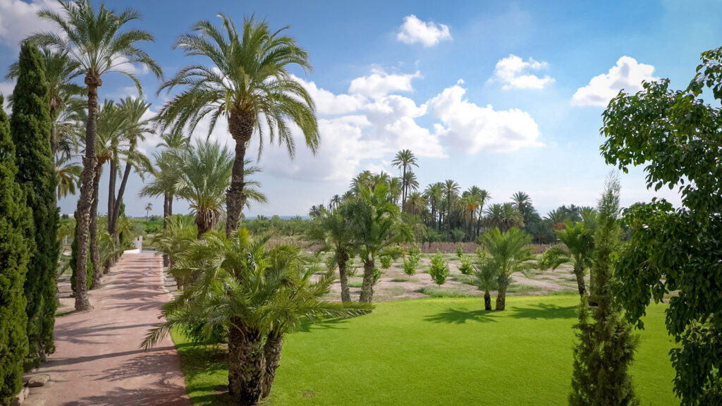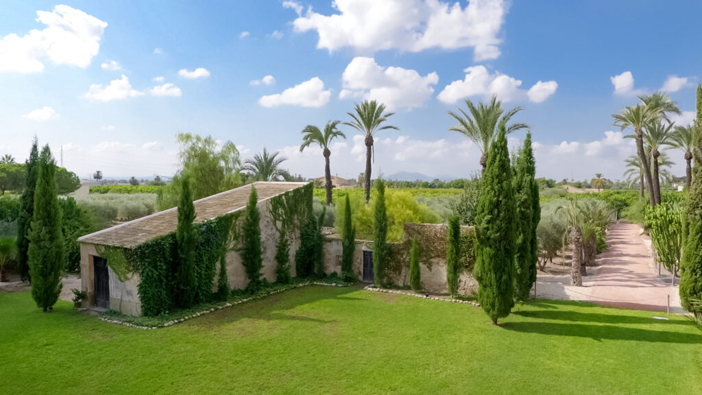 RESPUESTA: Partiendo de la base del enclave, hablamos de un lugar único en el Campo de Elche por los huertos tradicionales que nos rodean, los jardines mediterráneos y la arquitectura de una casa de finales del s. XIX que se conserva de origen.