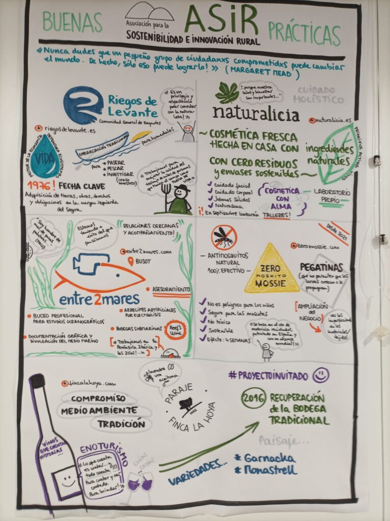 Durante la sesión, la artista gráfica @Tereseta, especialista en Relatos Gráficos, tomó buena nota de todo lo sucedido para plasmarlo en un mural donde recogió todas las ideas e inquietudes que fueron tomando forma a lo largo de la jornada.