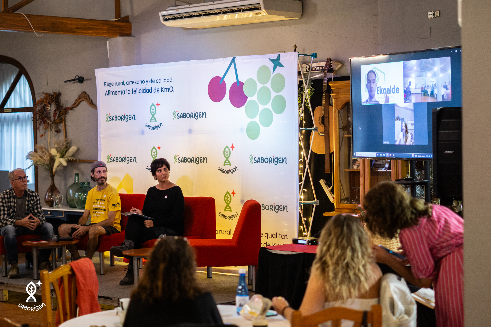 Seguidamente, llegó el turno de una mesa redonda en la que responsables de Som Alimentació, Ekoalde, Original CV y Alterbio intercambiaron experiencias e ideas, fomentando una conversación abierta y participativa entre público y ponentes. Un trabajo colaborativo que siguió con una actividad grupal en la que todos los presentes, divididos en equipos, crearon un mapa conceptual con oportunidades, estrategias y vías de futuro para el producto agroalimentario local. El evento concluyó con un showcooking del chef Kike Peris de Randurias y una degustación de productos Saborigen.
